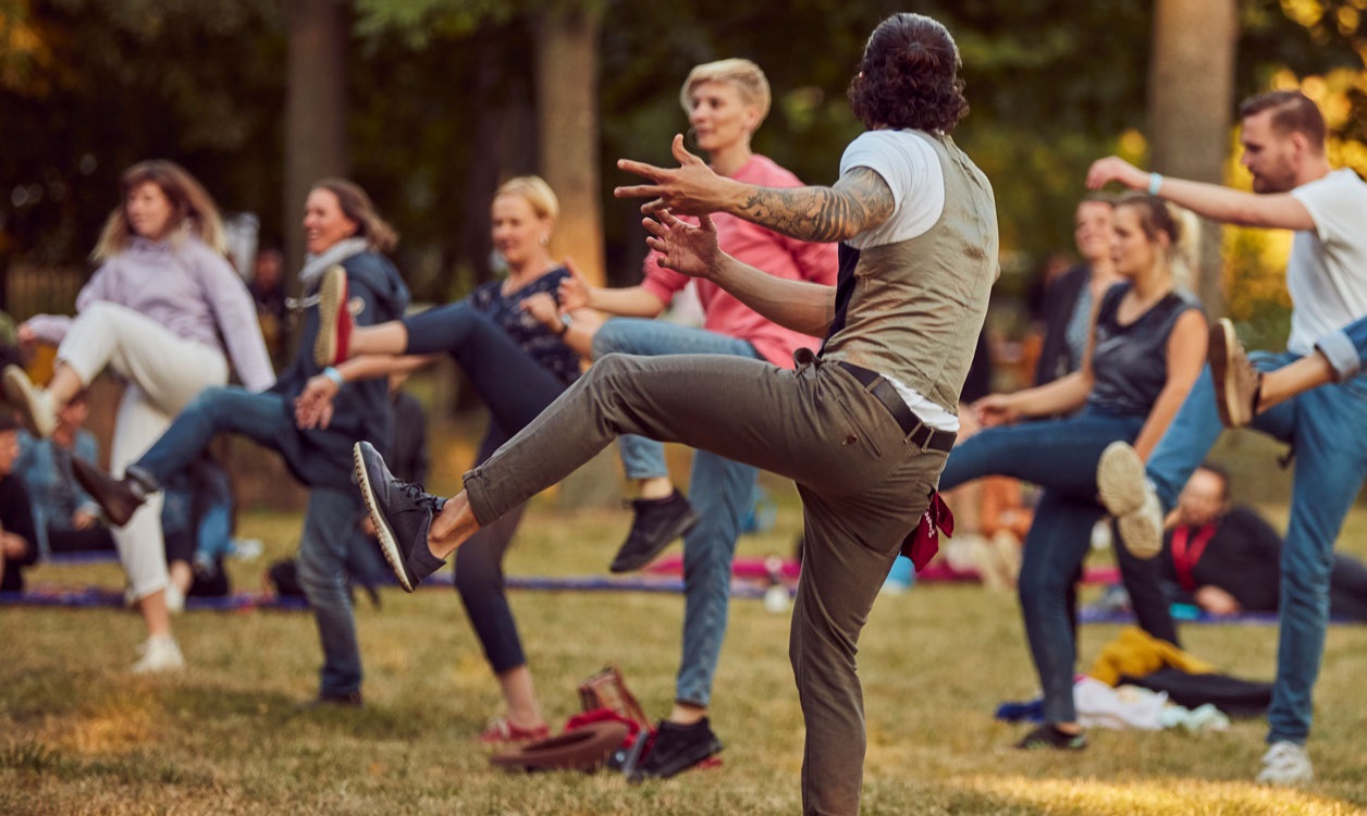 Das DANCE ALONG CONCERT ist eine Mischung aus Party und Performance, bei der alle Zuschauer*innen zusammen mit Tänzer*innen der Company eine einfache Choreografie im Stil der Company lernen und live mit der Band tanzen!
